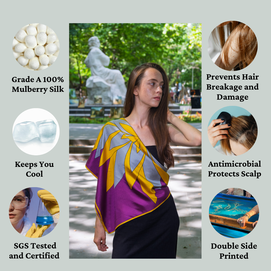 The true genius of our silk scarves lies in their dynamic ability to interact with your body and environment. Whether styled as a statement neck piece or a luxurious silk head scarf, it acts as a natural, temperature-regulating layer that keeps you comfortable in both warm and cool conditions, all while offering the superior skincare and style benefits of a pure silk hijab.